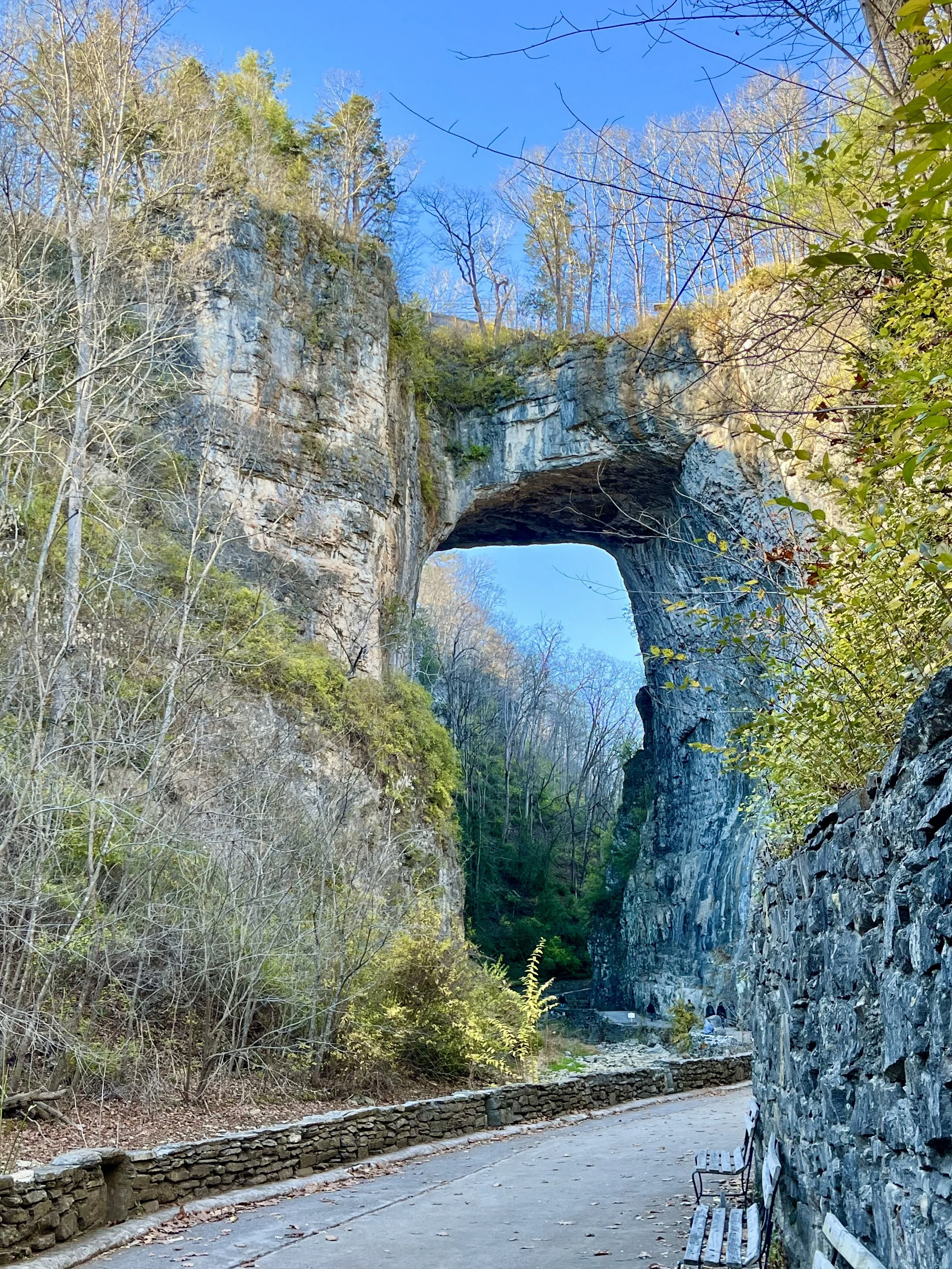 Next, we visited Natural Bridge State Park. The rock formation is spectacular, and the history is fascinating — George Washington surveyed it, and Thomas Jefferson bought the land out of admiration. The main riverside path is wide and easy to walk, though you’ll need to navigate some steep steps to reach it. There are many more trails we didn’t get a chance to explore, but I would love to revisit and see them another time.
