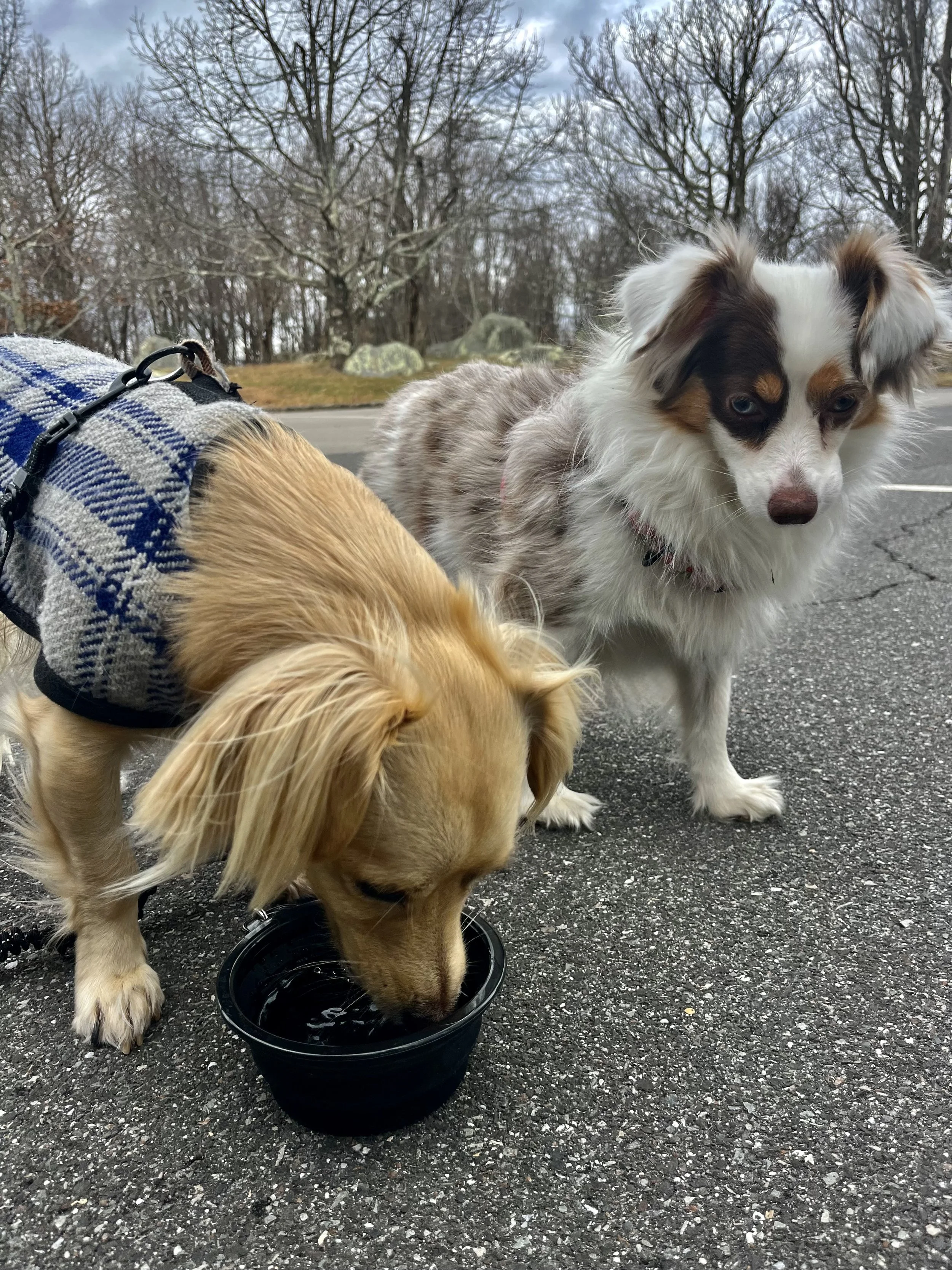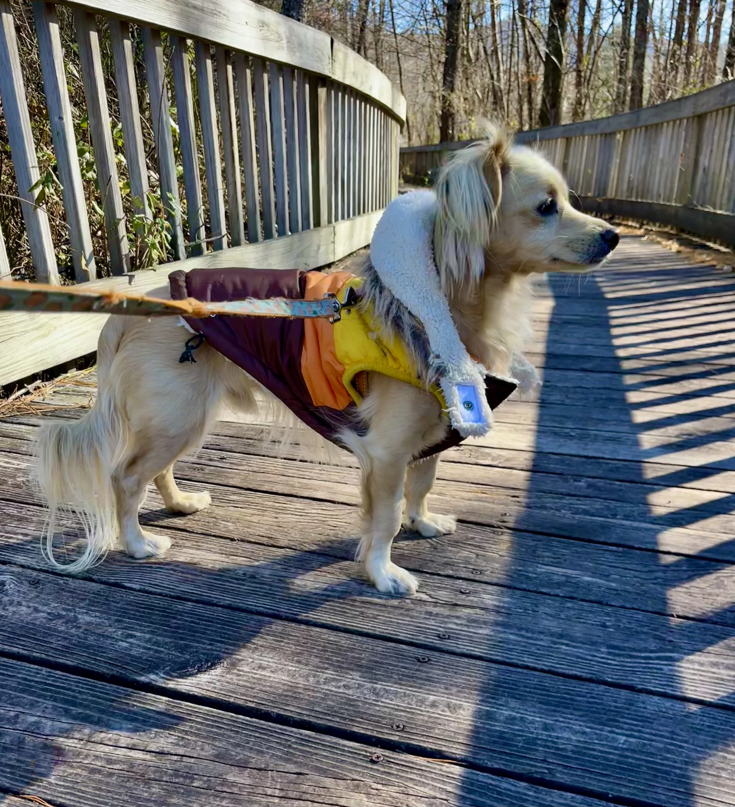 The trail was steep in sections with plenty of rocks, branches, and logs to navigate, but it was well marked and very peaceful. Archie and Saydie were full of energy, sniffing every new scent and pausing to watch the wildlife around us.