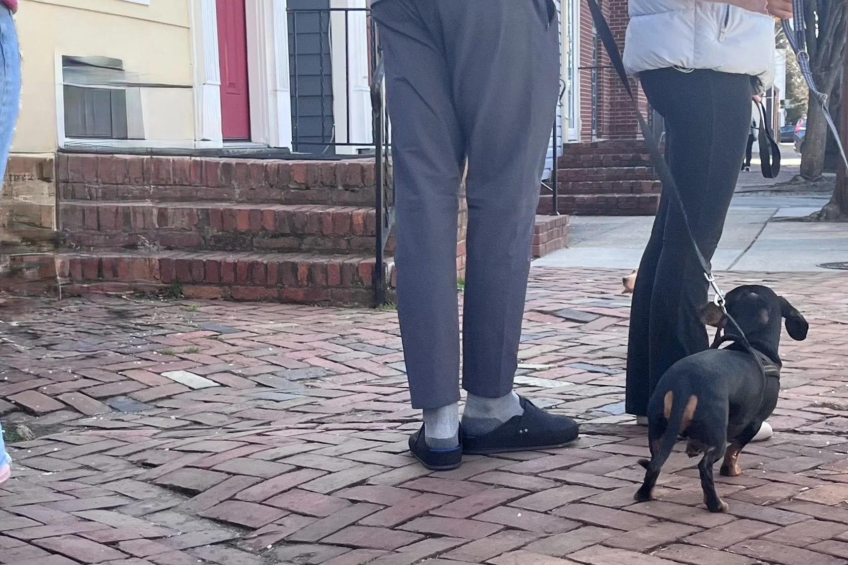 Familiar stoops become part of the route. Many Old Town homes keep dog treats near their gates — and the dogs remember.