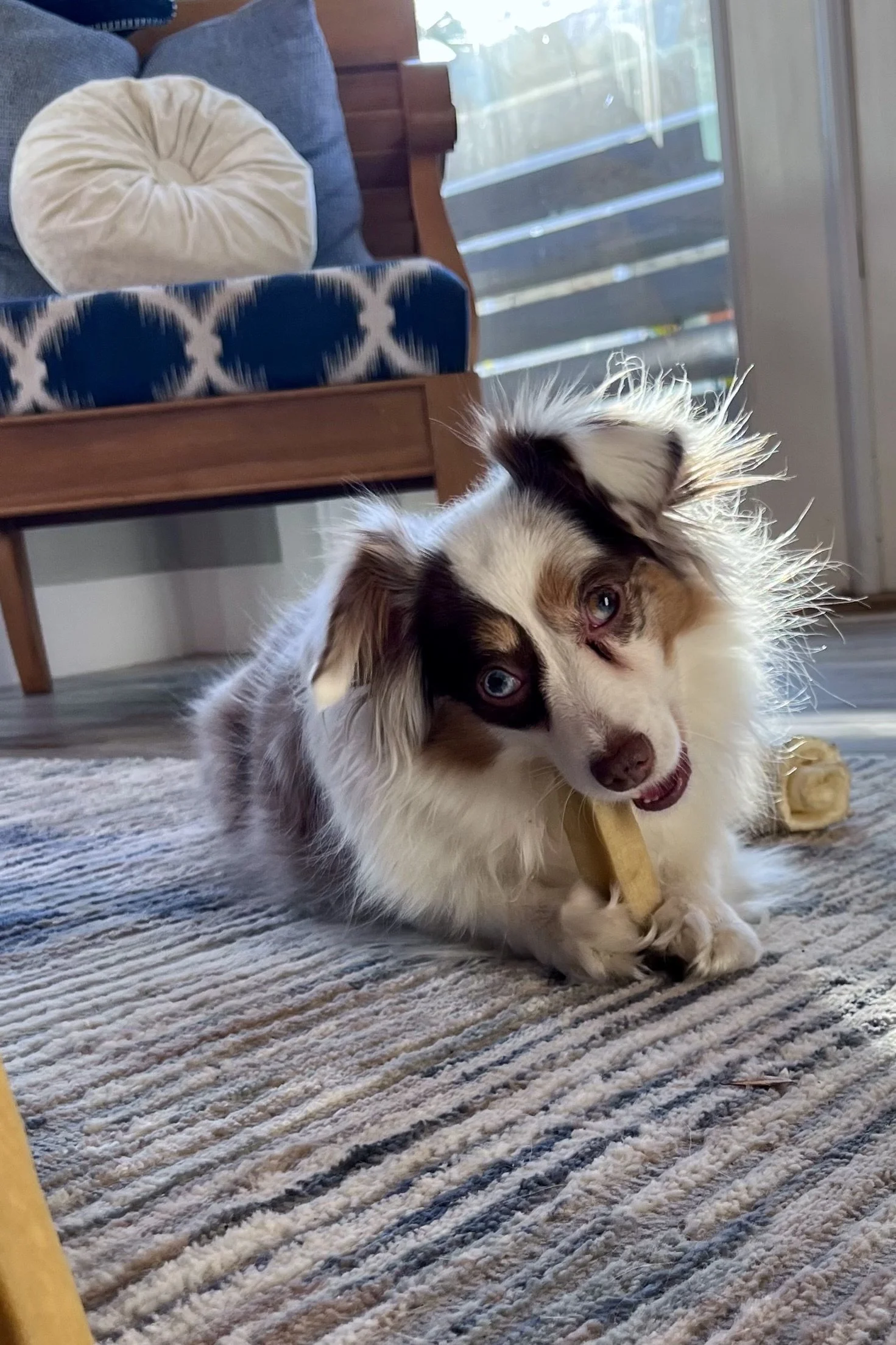 Afternoon downtime with a well-earned chew.
